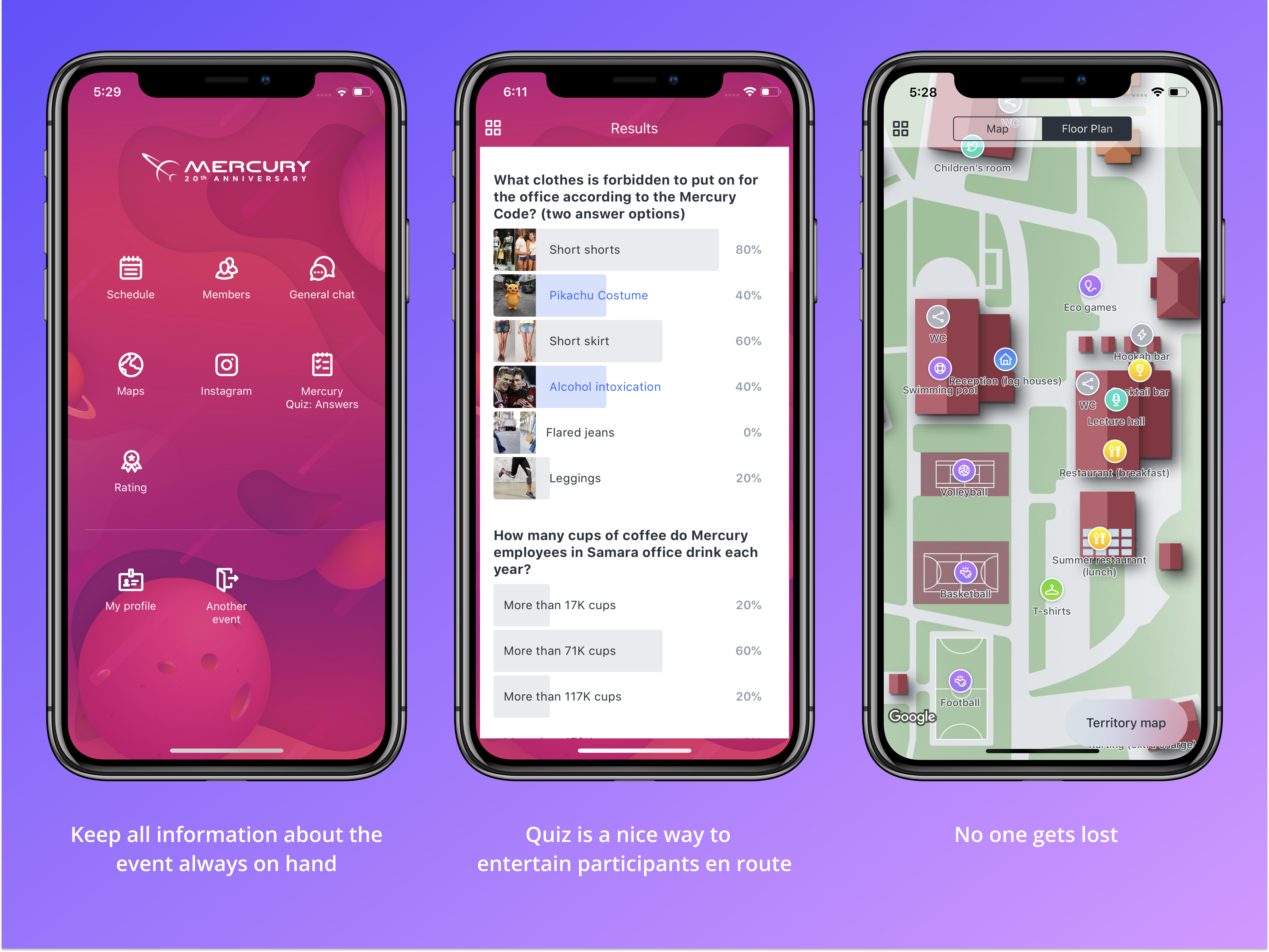 There was nothing extraordinary in how Mercury Development used an event app to deliver a better experience at its anniversary party — many companies do the same. However, there was something very unusual about the app itself. At the peak of the celebration, a special section appeared in the app, and it was announced that a movie about the company would premiere during the gala dinner.