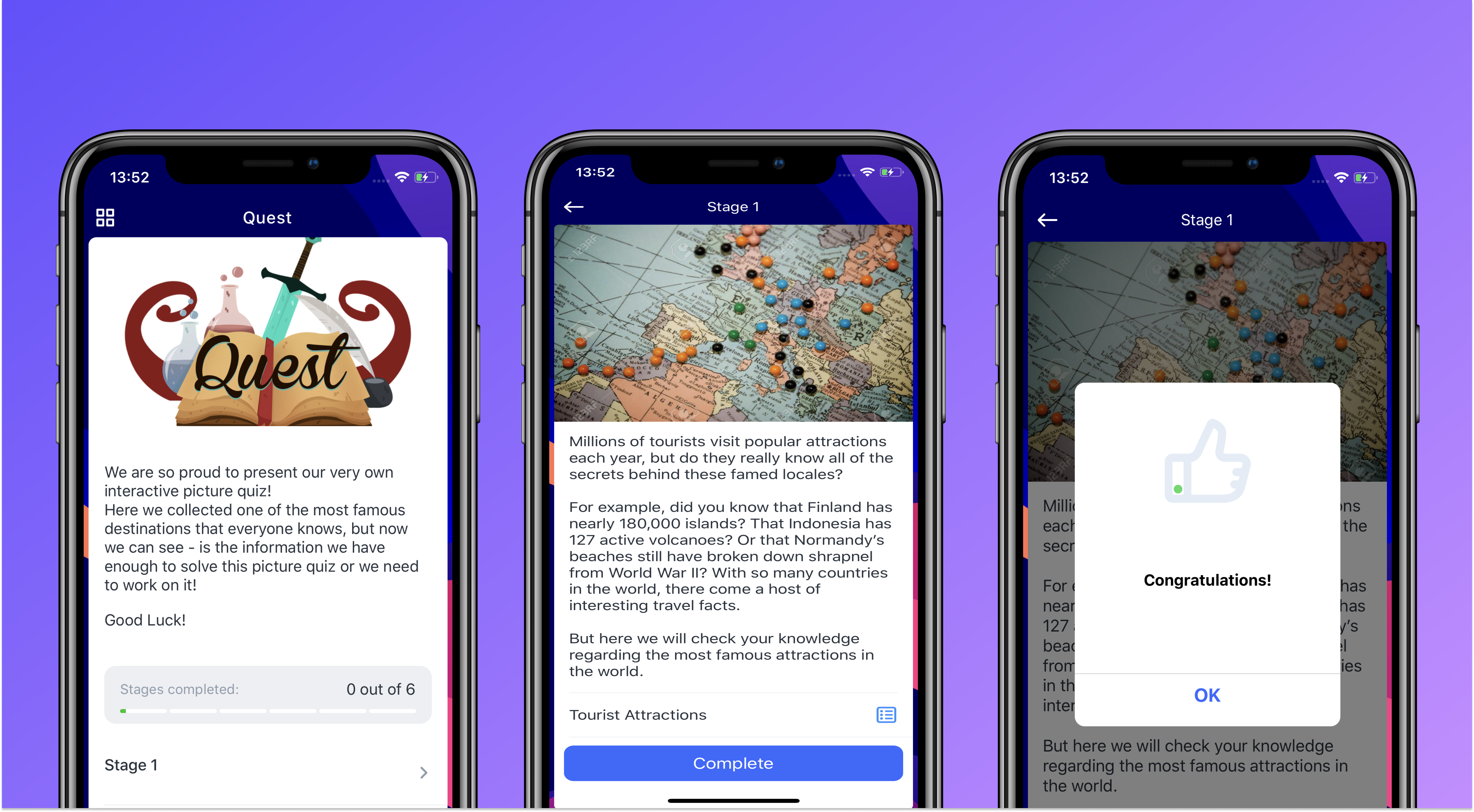 This new functionality can be used in many ways, one of which is to create quests that involve several steps or stages. Participants can work individually or in teams; they crack hints, complete tasks, and submit their answers to the mobile app. If the answer is correct, the next stage of the quest, with more tasks and hints, will be unlocked.